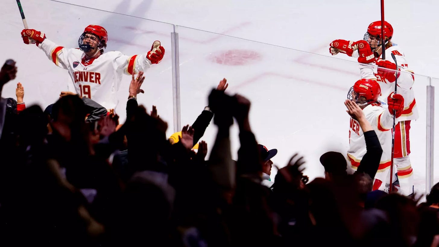 Denver and Western Michigan will meet again tomorrow in Loveland with a trip to the Frozen Four on the line. Meanwhile, in Albany, Michigan got past Bentley, and Minnesota Duluth ended Penn State’s season.