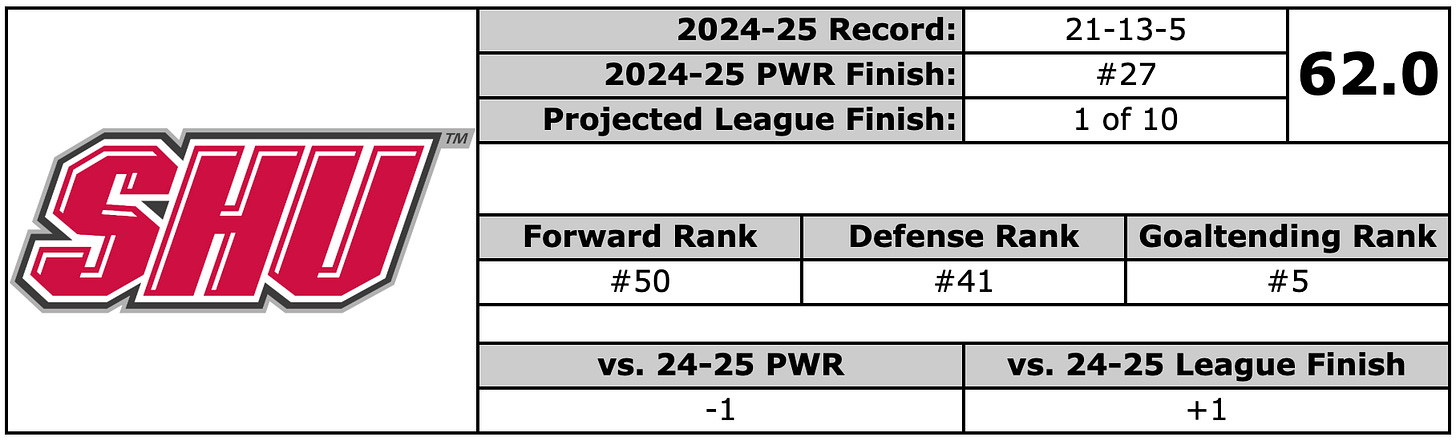 The Pioneers went 21-13-5 last season and lost to eventual conference champion, Bentley, in the AHA semifinals. The Pioneers posted their best win total since a 21-win season in 2019-20.