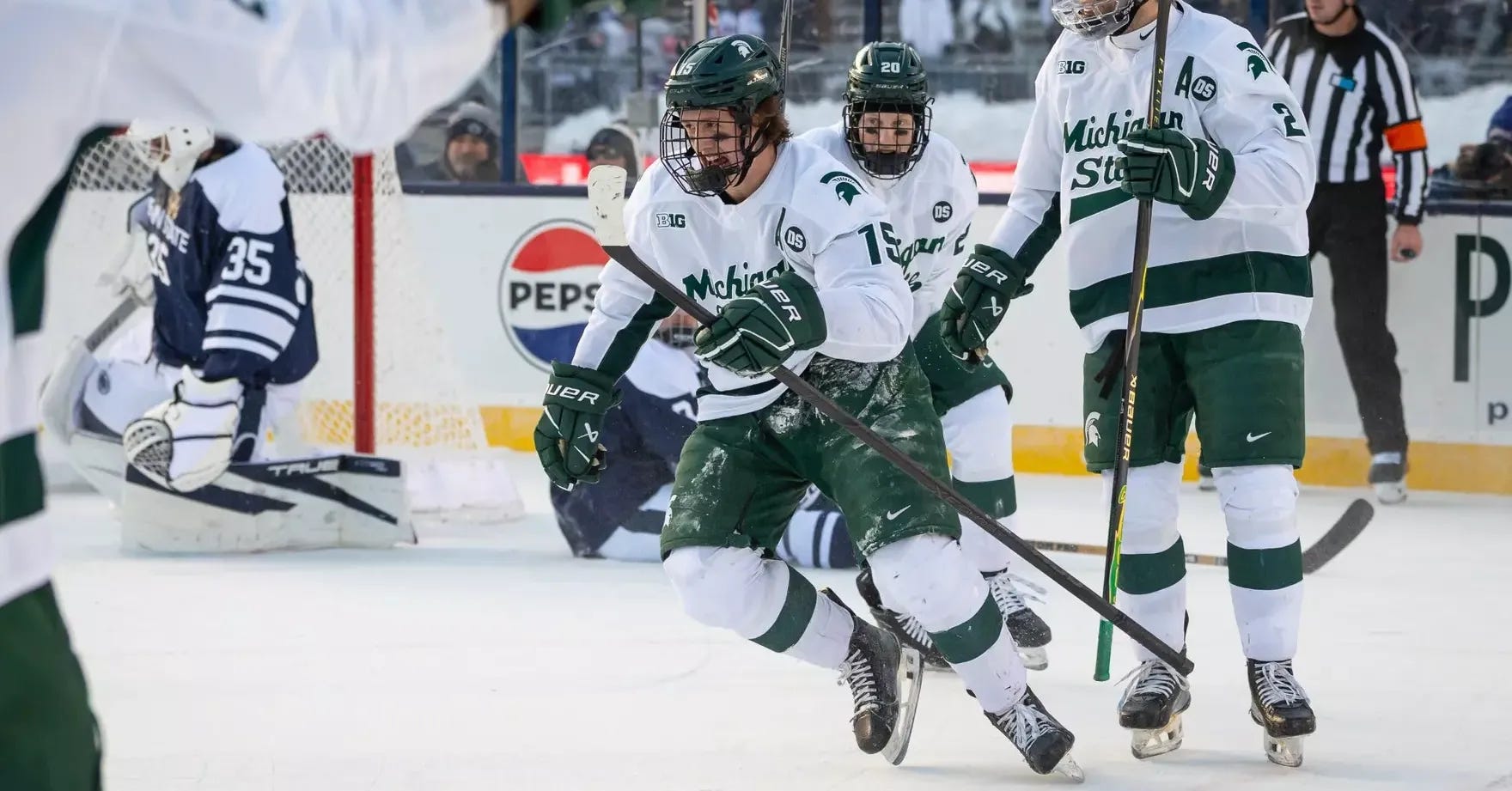 Charlie Stramel’s overtime goal was the difference for Michigan State, which completed a weekend sweep over Penn State with an outdoor victory at Beaver Stadium. Elsewhere, Minnesota swept Wisconsin, Denver goalie Johnny Hicks came back after getting injured on Friday to post a shutout for the Pioneers, and much more.