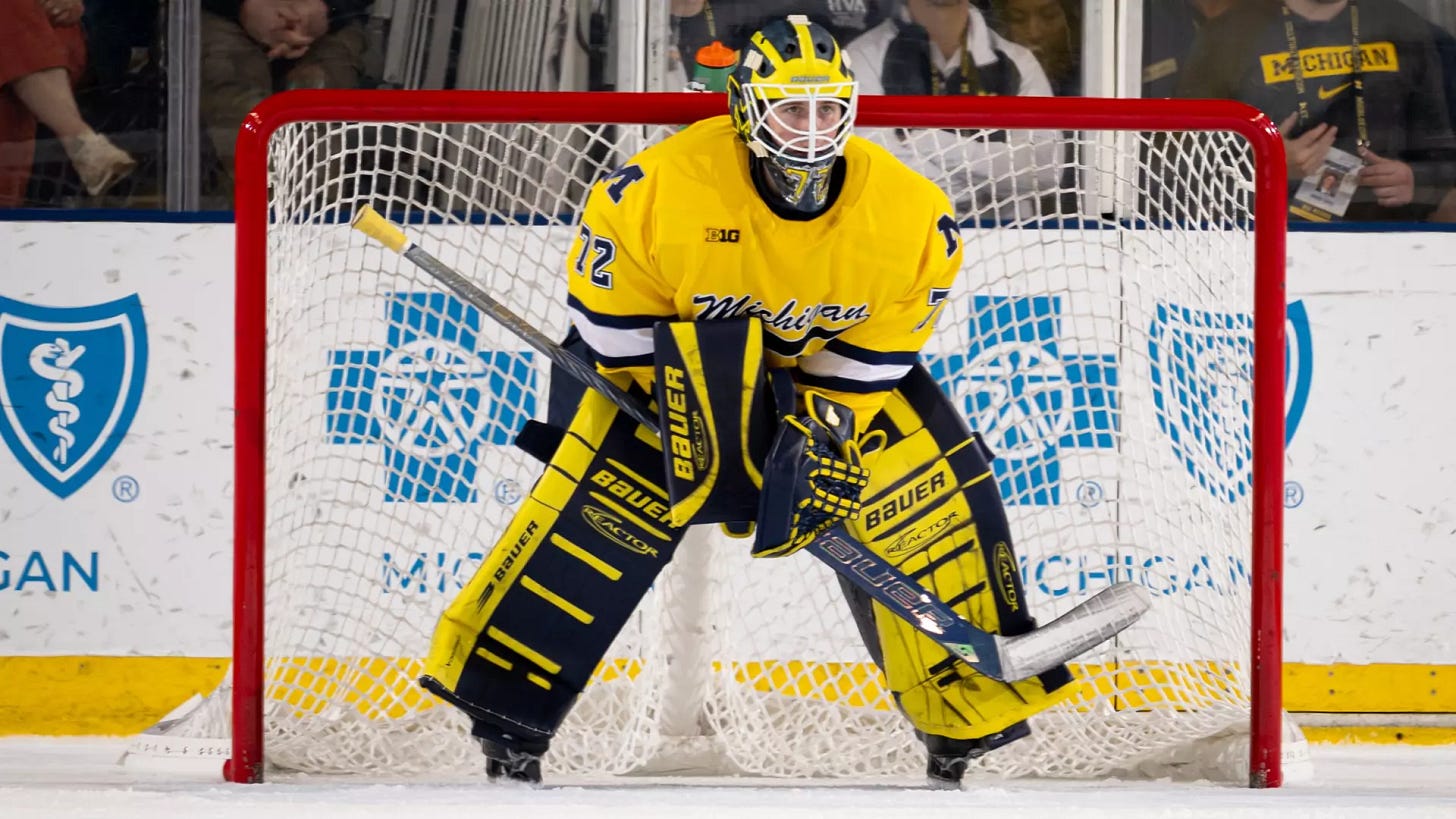 But perhaps the biggest development of the weekend came in Ann Arbor, where Michigan’s win over Notre Dame was overshadowed by the uncertain status of Wolverines goaltender Jack Ivankovic after a second-period collision that forced him to leave the game, and potentially miss significant time.