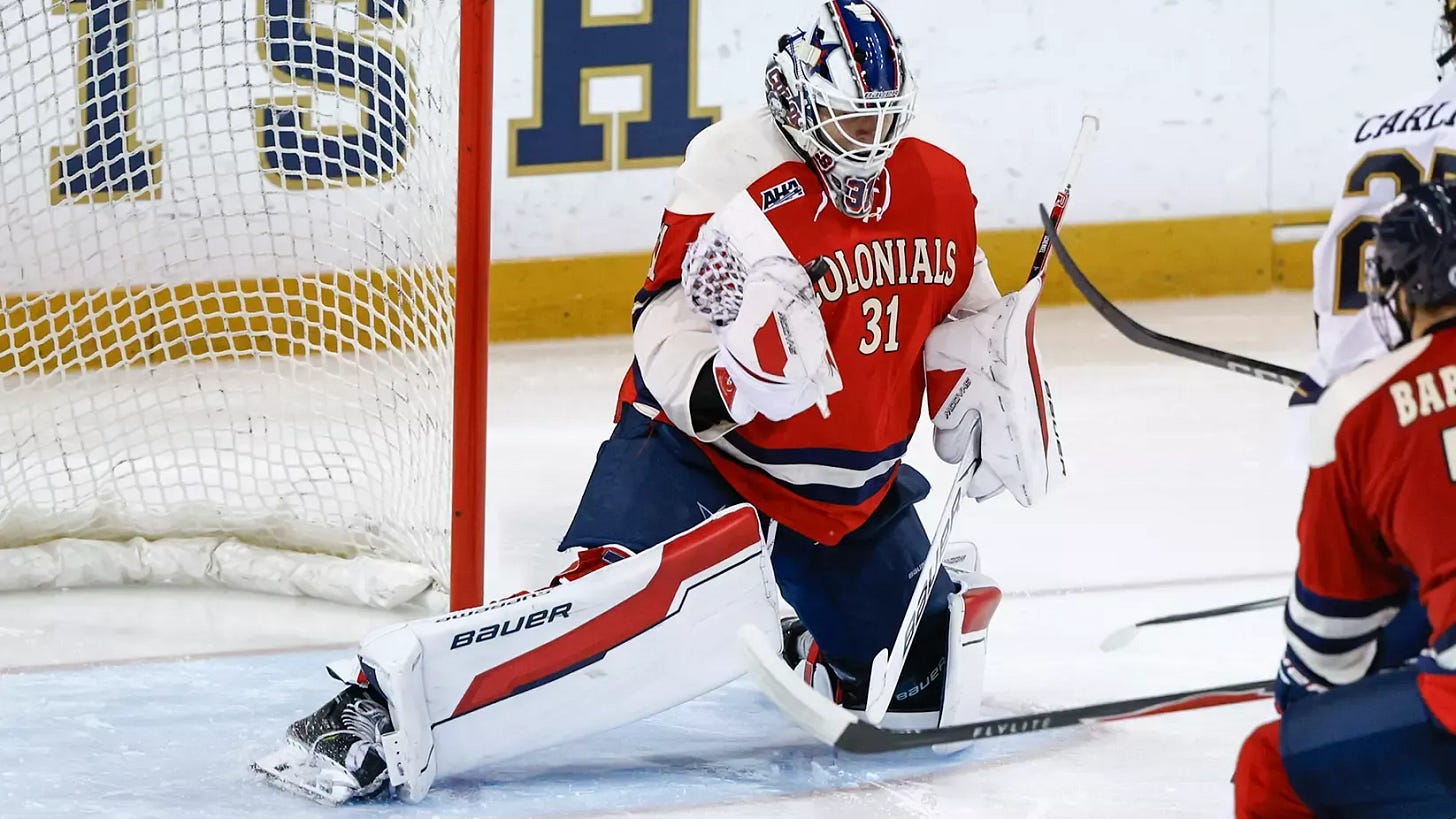 Robert Morris 5, Air Force 2: Freshman goaltender Charlie Schenkel made 60 saves, setting a new Robert Morris program record in a Game 3 win for the Colonials. Michael Felsing scored two goals for Robert Morris.