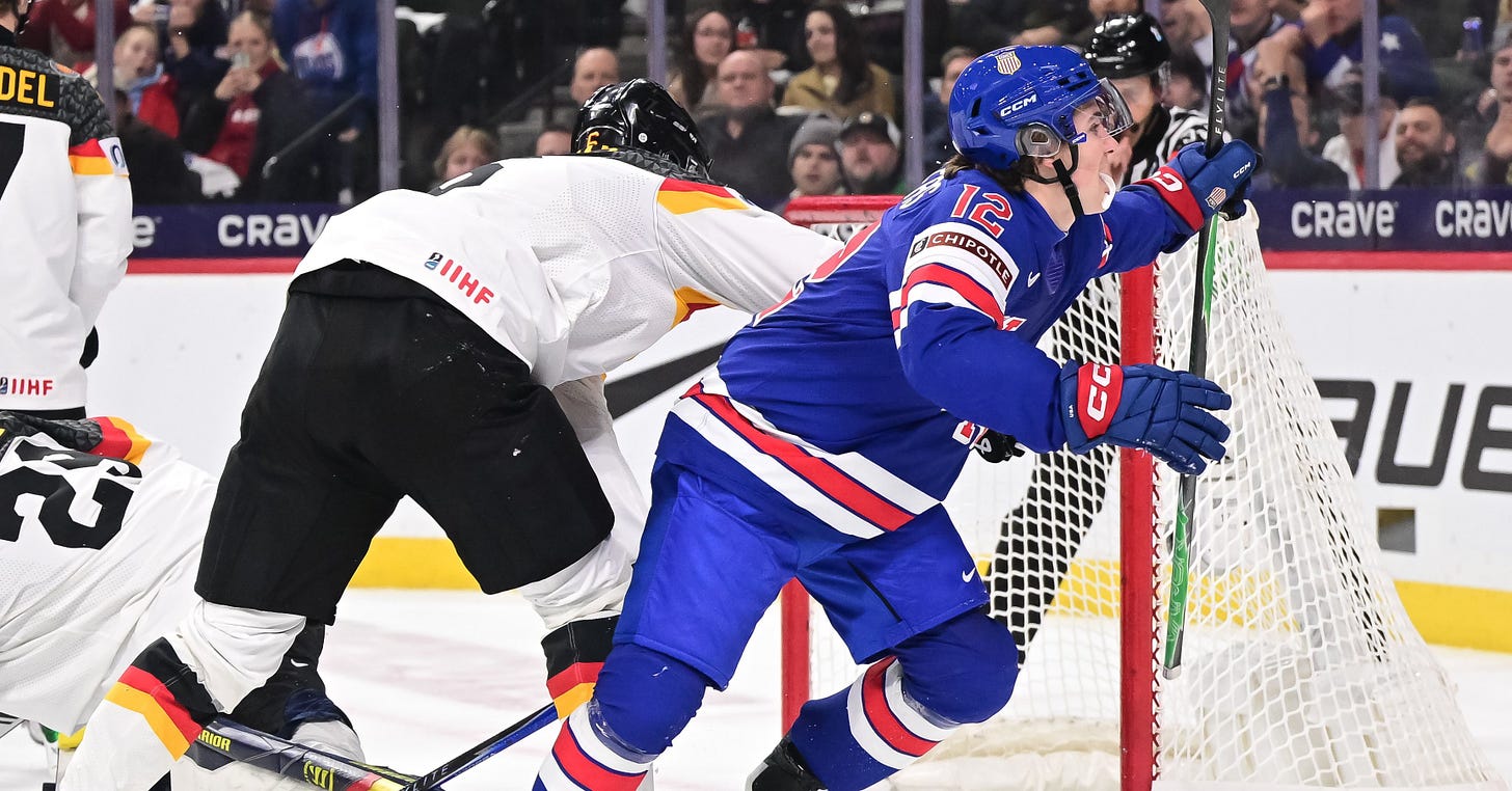 Germany pushed back to make it a 3-2 game in the second period, but tw0 goals from Will Zellers (North Dakota) and another from Cole Eiserman (Boston University) steadied the U.S. and created separation.