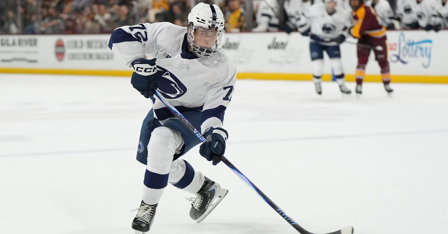What stood out most was McKenna’s ability to adapt to the tighter spaces and reduced time on the puck at the NCAA level. There were growing pains — including a questionable decision on a cross-checking penalty early in the third period on Saturday — but he bounced back with a power-play goal that sealed the win for the Nittany Lions, who rallied twice in the third period.
